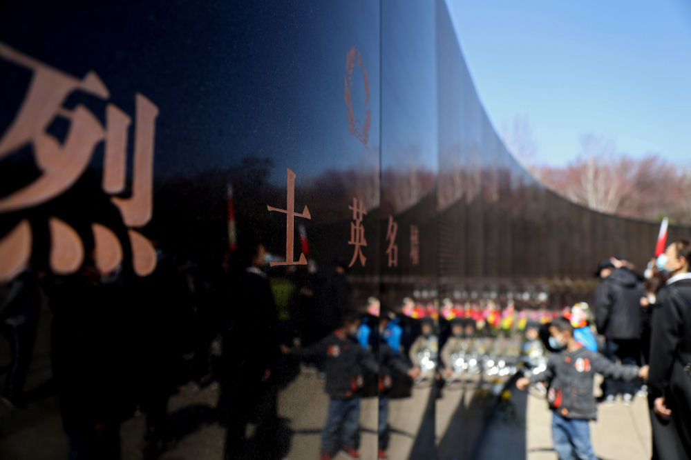 4月4日,祭扫者在沈阳抗美援朝烈士陵园烈士英名墙前瞻仰祭拜。新华社记者 姚剑锋 摄