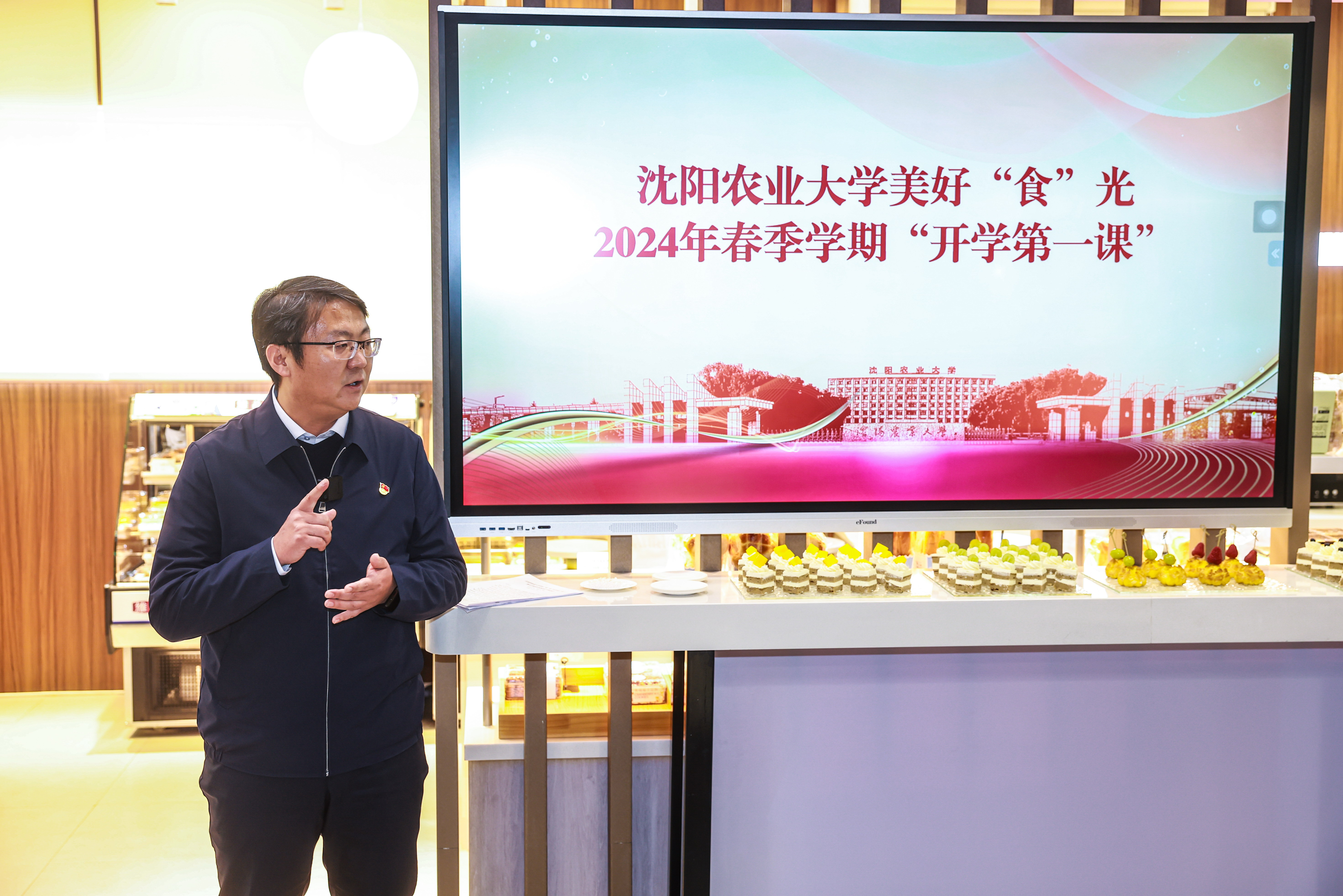 3月7日,沈阳农业大学校园内,一堂别开生面的“开学第一课”在学生三食堂开讲。学校党委副书记、副校长李斌走进学生中间,以“走进美好‘食’光 奋斗成就梦想”为主题,与学生共话“成长”。